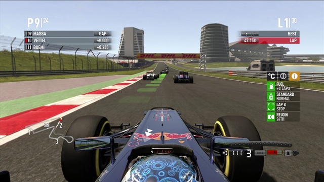 mudanças significativas em relação à anterior.O modo online recebeu bastante cuidado e tornou-se o foco da série. O game conta com um grid completo, no modo multiplayer online, o que quer dizer 24 carros na largada, sendo que 16 deles são controlados por jogadores reais.F1 2011 ainda oferece o modo de competição por temporada, com os circuitos reais da Fórmula 1 deste ano. A jogabilidade e os controles sofreram modificações para se tornarem mais avançados e precisos, o que permite aos jogadores elaborarem estratégias ao longo da corrida, em vez de vivenciar ações curtas, momento a momento.A cada prova, os jogadores vivenciam o dia a dia de um piloto, participando da pré-corrida nos boxes, sofrendo toda a tensão e as preocupações da equipe.
